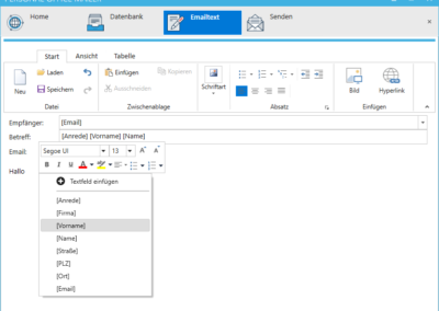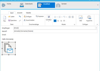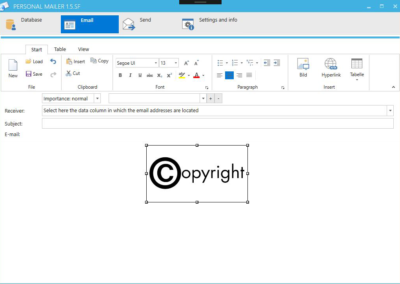 In addition to text formatting, images, tables, colors, and hyperlinks, your emails can also contain text boxes. These text fields fills the program separately with your data for each recipient. The personal address of the customer is child’s play even with hundreds of recipients.